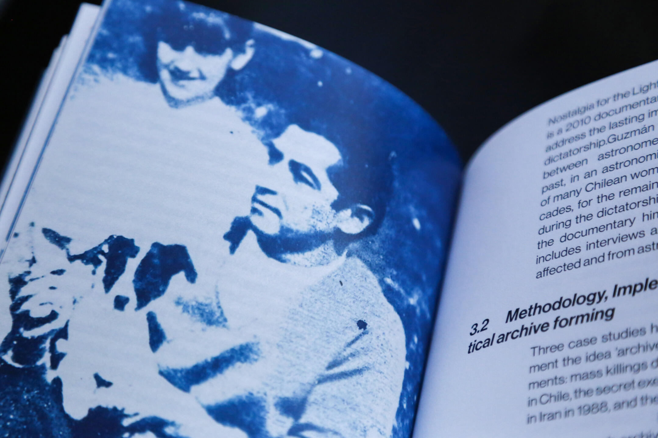 Book design: Gabriella ParaGraveless Lovers; a research on dynamics of disaster, denial, trauma, and the intergenerational transmission of suffering under oppressive regimes.Case studies from the mass killing which have been denied by the oppressive regimes serve as focal points for this exploration. Each of these tragedies occurred in distinct geographical and natural settings, yet they share a common thread: the persistence of memory through nature. The practical work seeks to visuallyrepresent this idea by using alternative print methods, such ascyanotype, soil-connected printing, and chlorophyll type and soon, to create images that are embedded in natural elements. Theseprints, supported by video footage and sound installations, aim tonarrate the ongoing life, hope, and death of the victims,reinforcing the concept that nature itself is a guardian of memory.