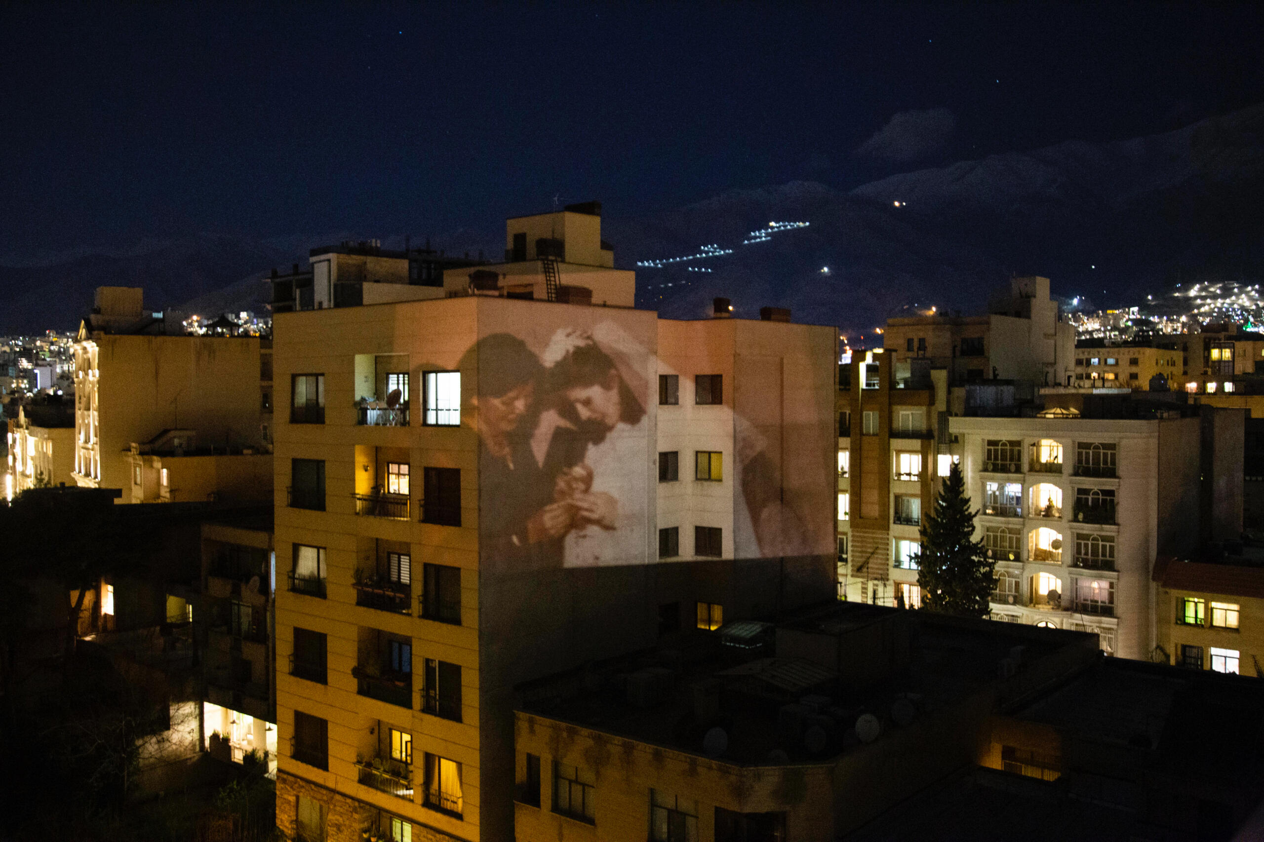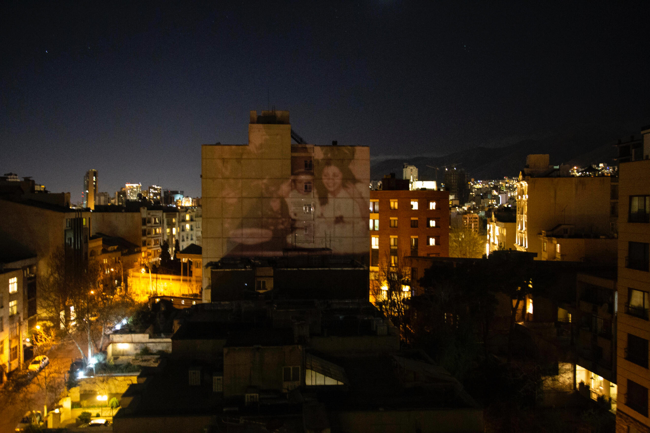 Tehran, Iran, December 2021In this series of site-specific interventions, the artist projects their private family archive onto the architectural facades of Tehran at a monumental scale. By elevating intimate domestic snapshots to the proportions of public billboards, the work enacts a deliberate "domestication" of the urban environment. The project forces a confrontation between the state and the individual, utilizing the city’s own infrastructure to challenge the boundaries of what is permitted to be seen.