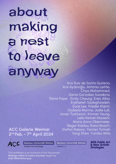 Ausstellung Winterwerkschau der Bauhaus-Universität, Studierende des MFA-Programms «Kunst im öffentlichen Raum und neue künstlerische Strategien» sowie der Fakultät Kunst und Gestaltung der Bauhaus-Universität WeimarFr., 02.02.2024–So., 21.04.2024, Acc Gallery , Weimar