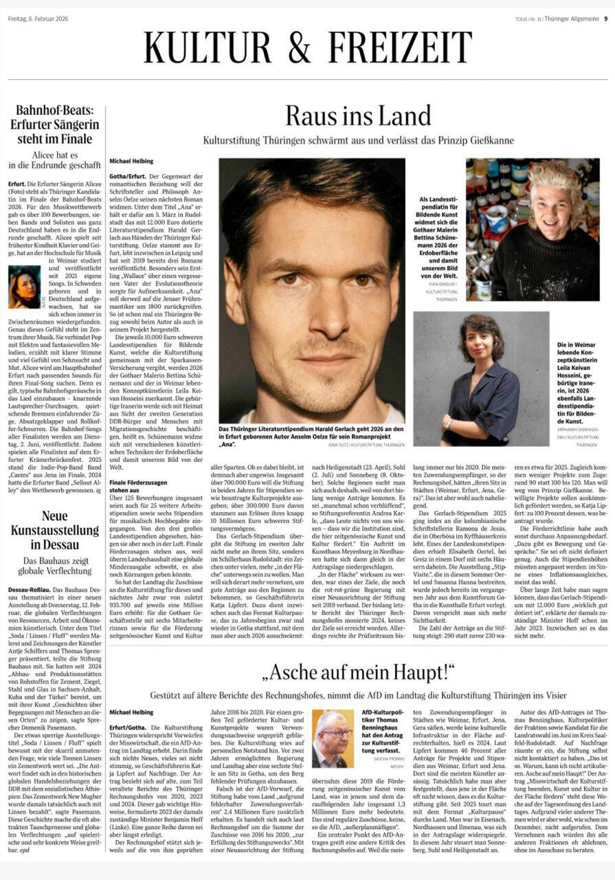 Leila Keivan erhält ein Thüringer Landesstipendium für Bildende Kunst, das die Kulturstiftung Thüringen gemeinsam mit der @svsparkassenversicherungde vergibt.Leila Keivan schloss 2024 ihr Studium im Bereich Kunst im öffentlichen Raum und neue künstlerische Strategien an der @bauhaus_uni @stadtweimar ab. In ihrem multidisziplinären Schaffen richtet Leila Keivan den Blick auf Archive und »emotionale Überbleibsel«. Während des Landesstipendiums wird sich die gebürtige Iranerin mit dem Projekt »Das Archiv einer verschwundenen Utopie: Lisa, bleib hier, wir kommen jeden Tag zurück« dem Thema aus Sicht der zweiten Generation DDR-Bürger und Menschen mit Migrationsgeschichte widmen.